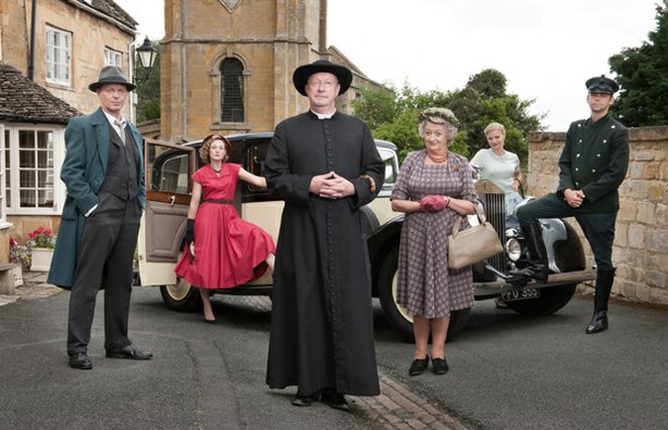 Además, a la hora de establecer el «universo» de la serie, se toman otras libertades notables.  Aunque se quedan muy lejos de la hipermodernidad del brillantísimo «Sherlock» de Moffat y Gatiss, «actualizan» al padre Brown llevándolo a los años 50. En palabras de Meyrick, pretendían hacer una serie de época, pero ambientada en un periodo histórico que pudiera formar parte de la memoria viva de muchos de sus espectadores. Tampoco tienen inconveniente en limitar el ímpetu trotamundos del cura y prescindir de sus viajes para ambientar todas sus aventuras en el condado de Gloucestershire. Por último, rodean al padre Brown de un reparto más o menos variopinto de secundarios:  «Adjudicamos a nuestro padre Brown una banda de ‘ayudantes'», dice Meyrick, «como parte del proceso necesario para hacer que la serie funcionase como drama de cuarenta y cinco minutos, lo cual es distinto de un relato corto. Nos permitió dar más cuerpo a las historias».